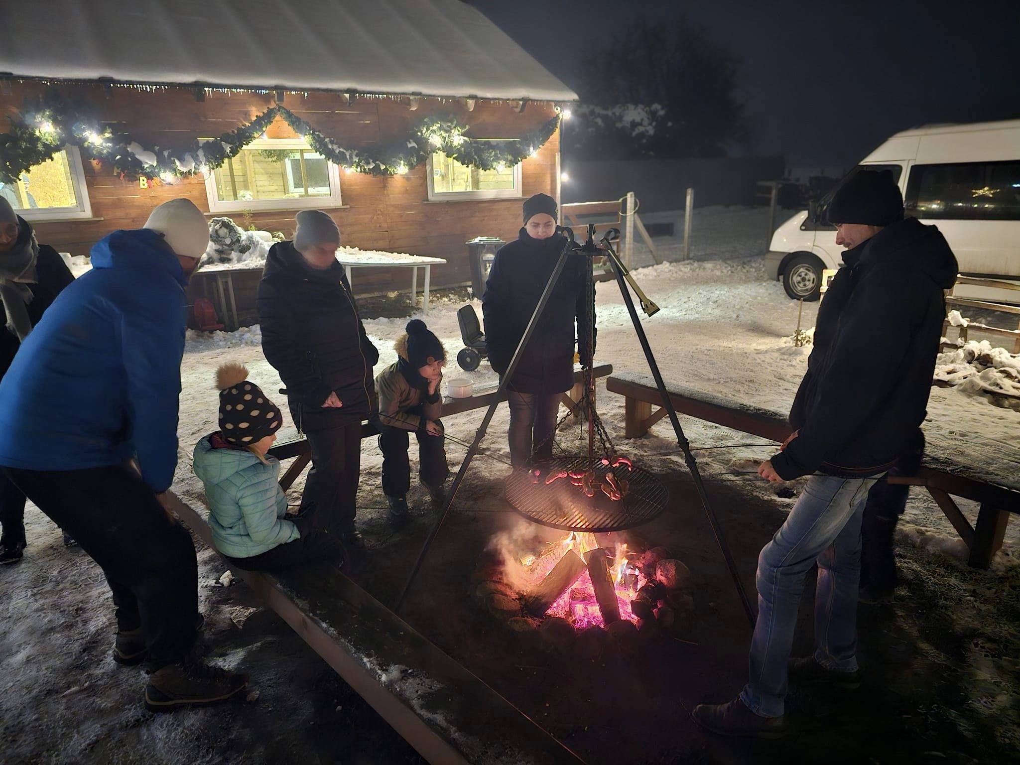 Dzieci miały okazję odebrać prezent od prawdziwego Mikołaja w specjalnie urządzonej do tego altanie. Dodatkowo odwiedziły zagrodę z alpakami, mogły je nakarmić marchewką, pogłaskać, poprzytulać i urządzić sesję zdjęciową z rodzicami. Obok w sali odbyłby się zabawy plastyczno-sensoryczne dla dzieci, a rodzice skorzystali z okazji aby się zintegrować przy stoliku kawowym (kawa, herbata, drobny poczęstunek). Na dworze między altaną a zagrodą z alpakami rozpalone byłoby ognisko, przy którym można by było się zagrzać, porozmawiać i upiec kiełbaski.